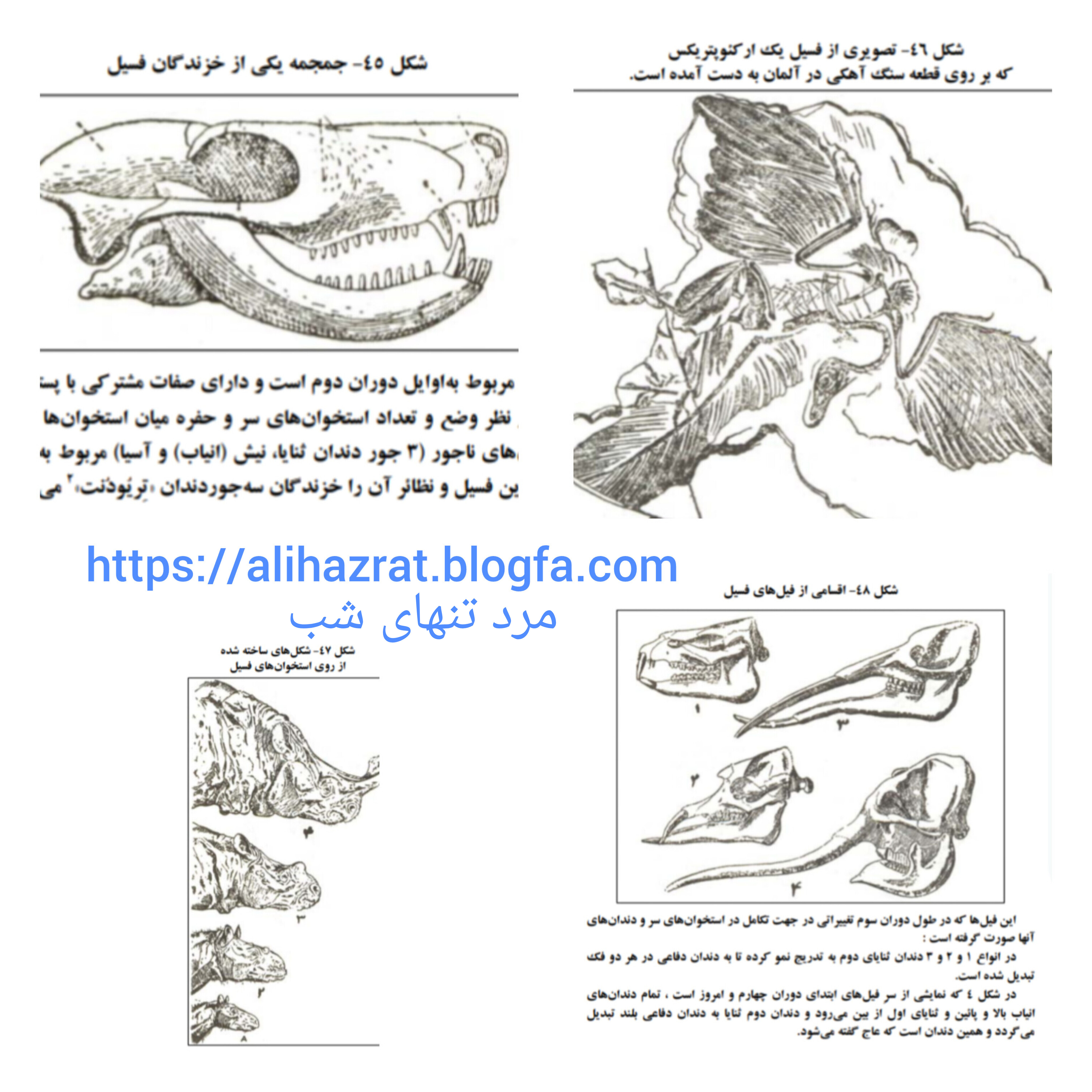 بعضي از فسيل شناسان جديد، با تحقيقات پر دامنه اي كه در زمينه اصلي گونه ها و تنوع تكاملي آنها كرده اند، نظريه قابل توجهي راجع به اشتقاق نسلي گونه ها اظهار داشته و شواهدي در تأييد آن ذكر نموده اند. نظريه مزبور به «اُرتوژنز» يا «تكامل هدايت شده» و يا «تكامل با هدف و مقصود» معروف است. شكل هاي ساخته شده از روي استخوانها ي فسيل چهار قسم متوالي از پستانداران اوايل دوران سوم كه در آنها برآمدگي مختصر روي بيني ، منتهي به دو شاخ قوي در نوعي از كرگدنهاي دوره اليگوسن ميگردد. (شکل ۴۷)